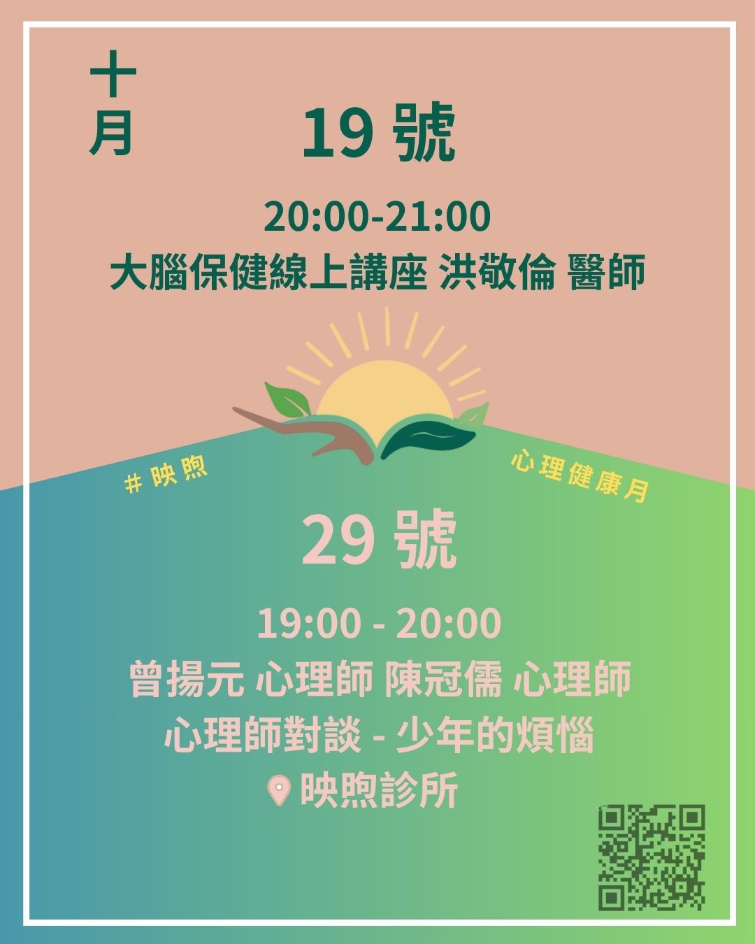 感謝您關注 映煦心身醫學診所 舉辦的【心理健康月系列講座】!
